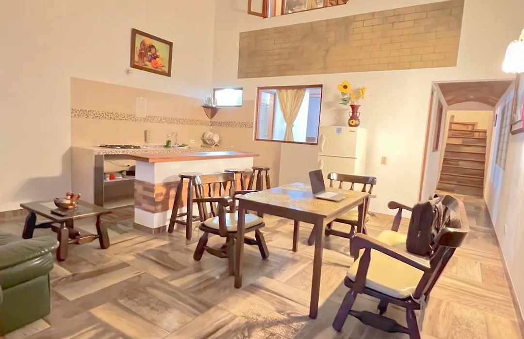 自炊設備として台所があります。 Apto A 4 Cuadras Del Centro Historicoアパートは最寄りのバス停(Terminal de transporte pubico)すぐ近くです。